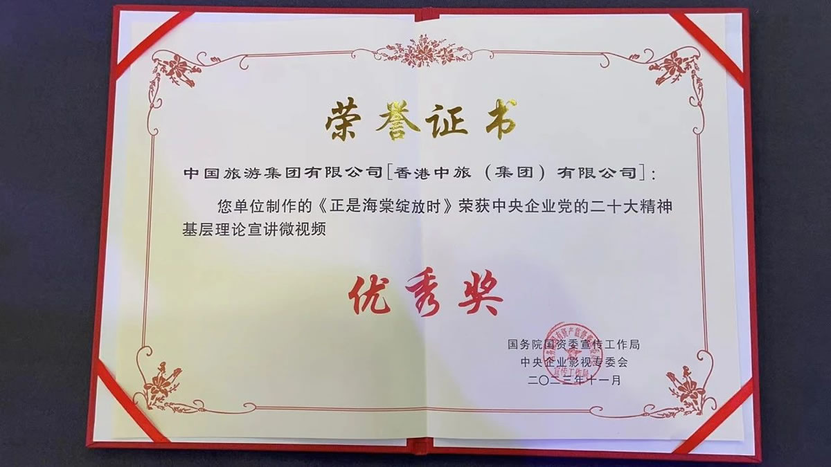 近日,由國務(wù)院國資委宣傳工作局主辦的2023年中央企業(yè)社會(huì)主義核心價(jià)值觀主題微電影(微視頻)展映征集活動(dòng)和中央企業(yè)黨的二十大精神基層理論宣講優(yōu)秀微視頻展示活動(dòng)在京成功舉辦。兩項(xiàng)活動(dòng)各評選出百部優(yōu)秀作品,其中,由中國旅游集團(tuán)選送,中免集團(tuán)三亞市內(nèi)免稅店有限公司(中國旅游集團(tuán)中免股份有限公司全資子公司)拍攝制作的微視頻《正是海棠綻放時(shí)》榮獲“中央企業(yè)黨的二十大精神基層理論宣講微視頻”優(yōu)秀獎(jiǎng)。