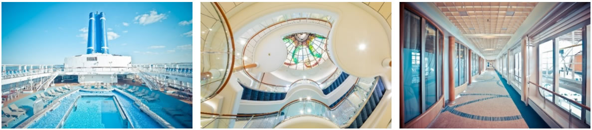 “鼓浪嶼”號以其優雅的設計和濃郁的貴族氣息令人贊嘆。經典的分層鴨尾設計,配以時尚的藍綠色定制玻璃置頂的挑高中庭,180度落地玻璃環繞的全景酒吧,以及寬闊的海濱長廊,營造出一個溫馨而親切的空間。