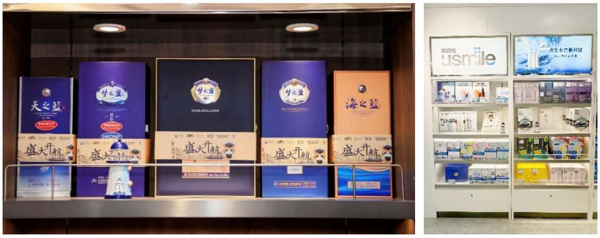 為了更好的提供客戶體驗,體會到“鼓浪嶼”號郵輪特有的上海風情,cdf鼓浪嶼號免稅店就上海主題對船長酒廊進行了裝飾,讓消費者感受到海上、家上海的風格。
