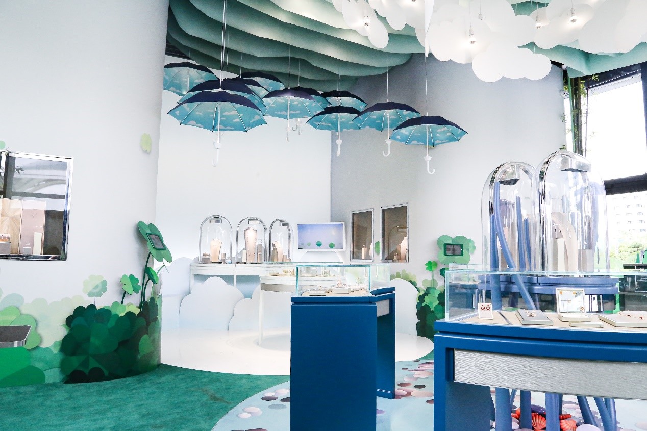 Van Cleef & Arpels梵克雅寶“Alhambra幸運花園”免稅限時精品店位于三亞國際免稅城后廣場。世家要員雅克·雅寶Jacques Arpels常言道:“心懷幸運之愿,方能成為幸運之士。”幸運是梵克雅寶一直以來十分珍視的價值,更是其創意靈感的泉源之一,因此限時精品店內部設計以世家標志性四葉幸運圖案為主題,以延續這珍貴價值。進店后,首先映入訪客眼簾的將是Burcu & Geoffrey 這對法國和土耳其的導演拍檔為Alhambra 特別創作的四葉圖騰造型蝴蝶沿途散播幸運的種子,帶領游客穿梭在幸運花園中,引領大眾一同探索夢幻迷人的Alhambra 幸運花園, 為游客營造出一種舒適愉快的珠寶欣賞空間。