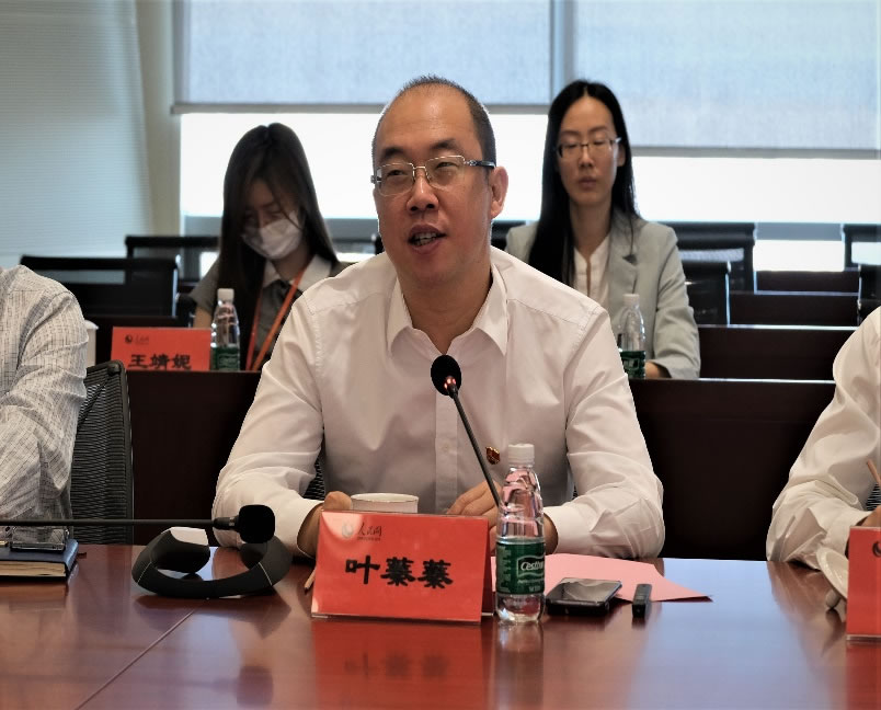 參觀結束后,雙方進行了座談交流。人民網黨委書記、董事長、總裁葉蓁蓁首先介紹了人民網的主責業務。他說,人民網始終履行黨網職責,積極落實習總書記關于推動媒體融合發展提出的全程、全息、全員、全效的“四全”媒體論述。近年來,人民網一直是媒體融合、轉型發展的引領者。人民網深研內容科技,聚焦一個內容主業,在內容原創、內容運營、內容風控、內容聚合分發四個內容業務上全面發力,在內容產業新的社會化分工的關鍵“生態位”發揮了引領、連接、標準制定等關鍵作用,探索實現從“黨管媒體”走向“黨管數據”,不斷鞏固中央重點新聞網站“龍頭”地位,逐步發展成為內容科技領軍企業。