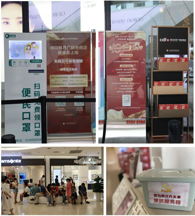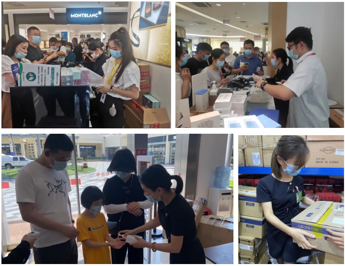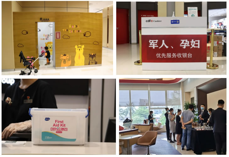 各門店結(jié)合實際情況,考慮顧客購物細節(jié),提供了多項貼心服務(wù):放置離島免稅政策說明牌,防疫溫馨提示牌、店面各品牌中英文導購圖,方便顧客了解相關(guān)信息;人流密集區(qū)域加裝空調(diào),調(diào)節(jié)舒適溫度;放置6套沙發(fā)、14條長椅,配備客用飲水機和紙杯,方便顧客休息;提供女性用品、行李寄存、貴重物品遺失招領(lǐng)、嬰兒車服務(wù)和傘套機服務(wù),加強細節(jié)服務(wù);增加25部移動POS機,節(jié)省顧客排隊等候時間;門店出入口安裝人體熱成像測溫儀,提高防疫體溫檢測效率;配備口罩、手消液和醫(yī)用濕紙巾等防疫物資,方便顧客做好個人防護;設(shè)置客服專線,確保在1小時內(nèi)給予顧客答復。