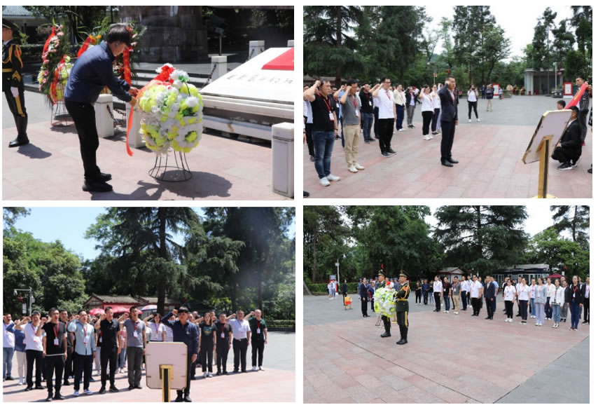 在紅軍山烈士陵園,學員們向革命烈士敬獻花籃,并在黨旗下重溫入黨誓詞。