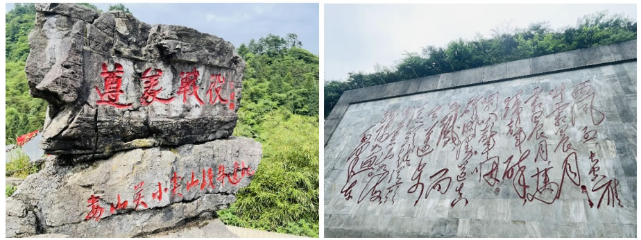 來到婁山關戰斗遺址,登上西風臺滄桑的石階,藍色蒼穹之下,勁松不屈,面對巍峨的山川,一覽無限江山,學員們慷慨萬分,還一起吟誦了毛澤東同志的那首《憶秦娥?婁山關》。