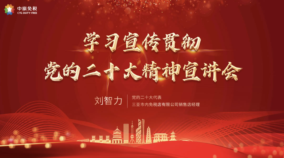 為持續深入學習宣傳貫徹黨的二十大精神,12月7日,中旅免稅黨委組織召開第二場學習宣傳貫徹黨的二十大精神宣講會,邀請黨的二十大代表、三亞市內免稅店劉智力同志分享參加黨的二十大、學習黨的二十大精神的心得體會。宣講會采取線上直播的方式進行,公司黨委班子成員、所屬企業黨委班子成員、公司各級黨支部書記、公司總部中層以上管理人員和公司全體黨員、團員在線參加學習,同時此次宣講會還向10000多名中旅免稅員工開放。