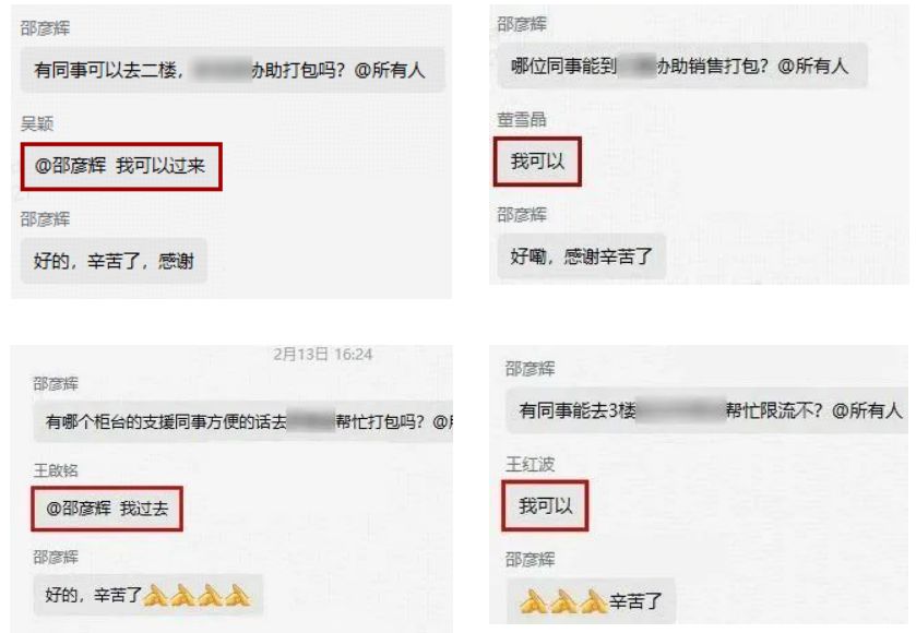 支援過程中,面對客流急速攀升、顧客咨詢問題增多、秩序維護(hù)繁忙、貨物打包分揀壓力大,需臨時調(diào)動支援崗位等情況,黨群工作部負(fù)責(zé)春節(jié)黨員支援服務(wù)現(xiàn)場協(xié)調(diào)工作的邵彥輝第一時間溝通協(xié)調(diào),支援隊員們積極響應(yīng),義無反顧地沖鋒在前。“我可以”“我過去”“我來”成了“紅色先鋒隊”支援交流群里的“刷頻”詞條,這是隊員們默契配合、共同應(yīng)對挑戰(zhàn)的具象體現(xiàn)。
