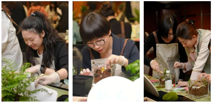 其中,微景觀藝術(shù)沙龍全天分為四場(chǎng),公司總部200余名女性職工積極參與。活動(dòng)期間,學(xué)員在老師的帶領(lǐng)下,通過聽、聞、看、觸,打開并提升自我的感知力,在與自然共處的同時(shí),擁抱自己,接納自己。