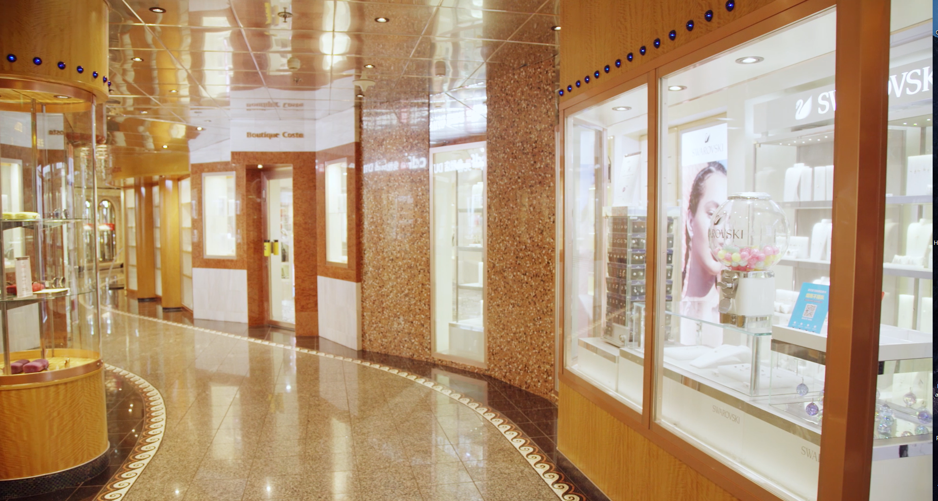 大西洋號(hào)郵輪免稅店位于歌詩(shī)達(dá)大西洋號(hào)3層,由香水化妝品區(qū)、精品配飾區(qū)、煙草酒水區(qū)、食品特產(chǎn)區(qū)及專(zhuān)賣(mài)店組成,面積逾400平方米。免稅店專(zhuān)注于打造全方位的免稅購(gòu)物環(huán)境,通過(guò)正品保證和貼心服務(wù),務(wù)求無(wú)論顧客在通往何處的旅程,都能享有同樣精彩、奢華的購(gòu)物體驗(yàn)。