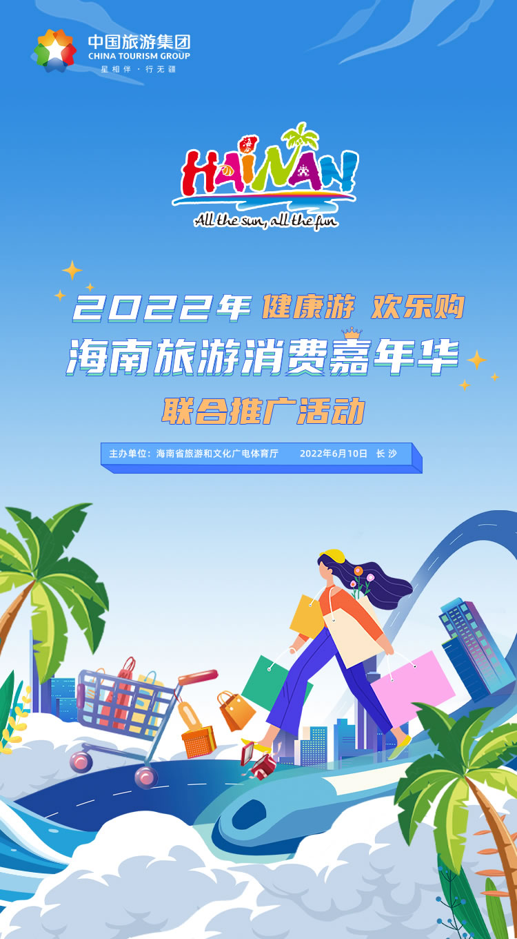 海南旅游消費嘉年華聯合推廣活動作為十大主題活動之一,以“健康游 歡樂購”為主題,以優質旅游產品、各類優惠政策和免稅代金券為吸引點,于2022年6月至8月依次在長沙、廣州、武漢、重慶、成都、杭州、南京、北京、上海等九大城市展開。活動將通過城市路演、企業現場宣傳推介及售賣、線上發放海南旅游大禮包相結合的形式,吸引市民及游客來海南旅游消費,為各涉旅企業開拓新的獲客渠道,推動旅游企業創收增效,拉動海南旅游質量和效益提升。
