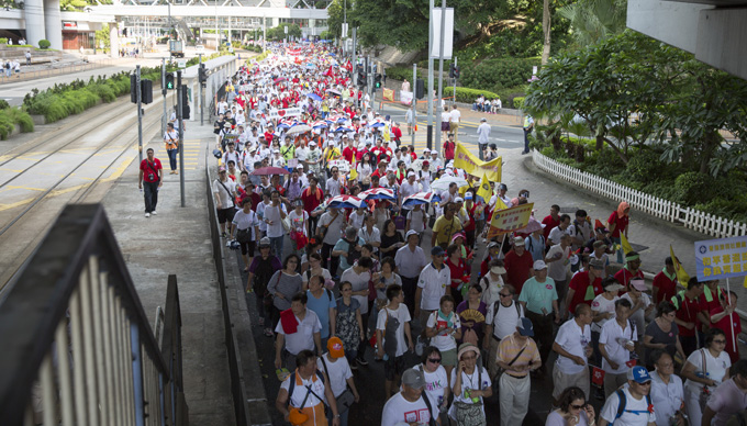 這次大遊行,是愛國愛港力量十幾年來最大的一次遊行集會活動。集團在港員工過去一次性參加遊行集會的人員都在300人左右,在香港中企協(xié)和集團職工聯(lián)誼會的倡議和號召下,這次有 800餘名員工和家屬參加,為8.17大遊行壯舉貢獻了港中旅人的一份力量。(集團職工聯(lián)誼會)
