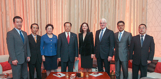 5月8日晚,集團張學武董事長、姜巖總經理在北京出席「中國迪拜周」歡迎晚會,並與此次活動發起方、迪拜酋長戰略諮詢顧問——獵鷹國際CEO等迪拜有關機構公司代表就進一步合作舉行會談。