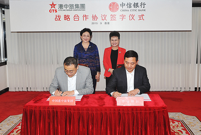 9月22日,姜巖總經理在集團會見了中信集團副總經理兼中信銀行行長李慶萍一行,雙方就港中旅集團與中信集團及中信銀行深化合作進行會談,幷舉行《戰略合作協議》簽字儀式。