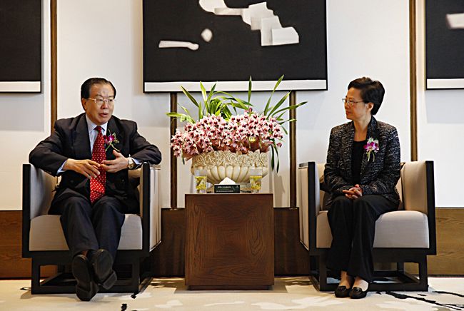 11月18日,集團張學武董事長在安吉會見了前來出席集團與安吉縣人民政府簽訂戰略合作協議暨港中旅Club Med安吉度假村建設啓動儀式的浙江省副省長梁黎明。