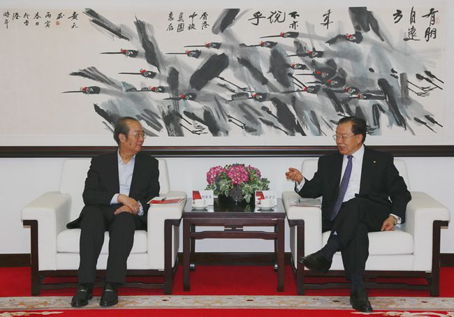 國新國際投資有限公司周育先董事總經理,集團許慕韓副總經理、鄭江總經理助理以及集團戰發部、合資公司等相關人員參加了會見。(集團辦公廳)