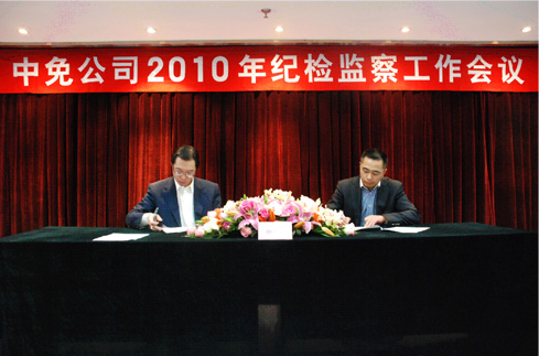 本次會議的主題是深入貫徹中紀委十七屆五次全會、國資委和國旅集團2010年紀檢監察工作會議精神,總結公司2009年黨風建設和反腐倡廉工作,提出2010年工作要求,由公司黨委書記盧路分別與公司經營班子成員和部門以上負責人、在京子公司主要負責人簽訂2010年《廉潔從業責任書》。