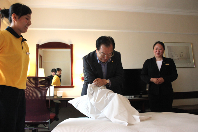 張學武董事長親身體驗麗都一線員工的工作