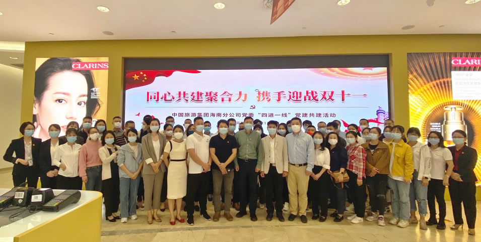 為助力海南離島免稅業務在2021年“雙十一”期間營銷熱力綻放,積極構建“資源共享、優勢互補、互相促進、共同提高”的黨建共建格局,推進“我為群眾辦實事”實踐活動和“四進一線”活動走深走實。11月10日,中免海南運營總部、海南省免稅品有限公司、中免投資海口公司、中免投資海南公司聯合集團海南分公司、集團財務共享中心,組成50多人的黨員聯合突擊隊、服務隊,深入海口市日月廣場免稅店銷售一線,開展“同心共建聚合力,攜手迎戰雙十一”黨建共建黨員服務活動。